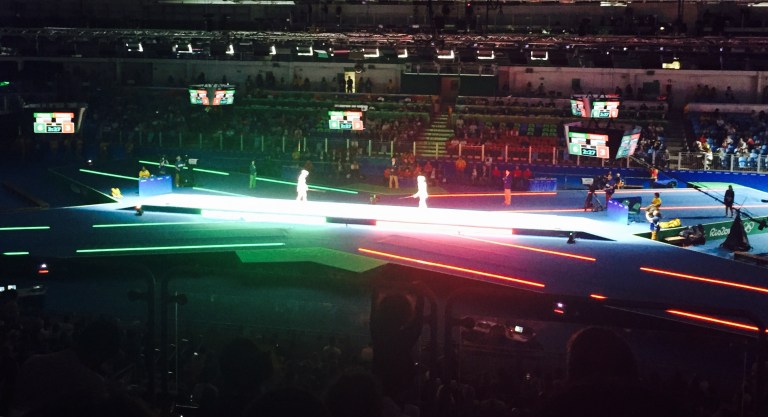 2. Event Action: Went to table tennis last night and the main match-up was between North Korea and Japan. Very exciting! It’s best of seven and even though the crowd was cheering loudly for Japan, the North Korean upset her. During that, I inadvertently found myself sitting next to Mima Ito, a Japanese team table tennis player. Before I left, a Danish table tennis player and I bonded over the completed inefficiency at the concession stands when we both attempted to buy popcorn. She was even more frustrated than I was and got us our money back. Went to the women’s sabre fencing finals today and watched Russia take gold and silver while Ukraine went home with the bronze. The final was a nailbiter, going down to the very last point! Had never watched fencing before and still don’t understand all of it but learned a lot all the same.