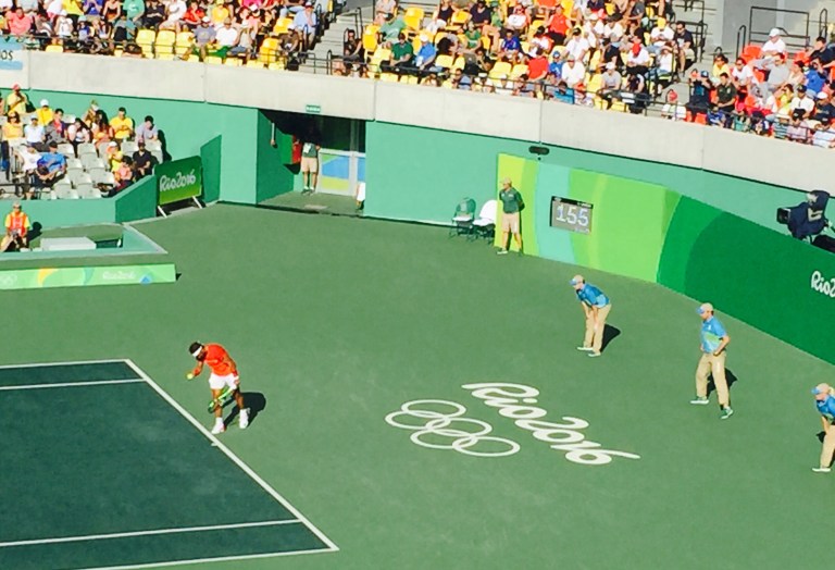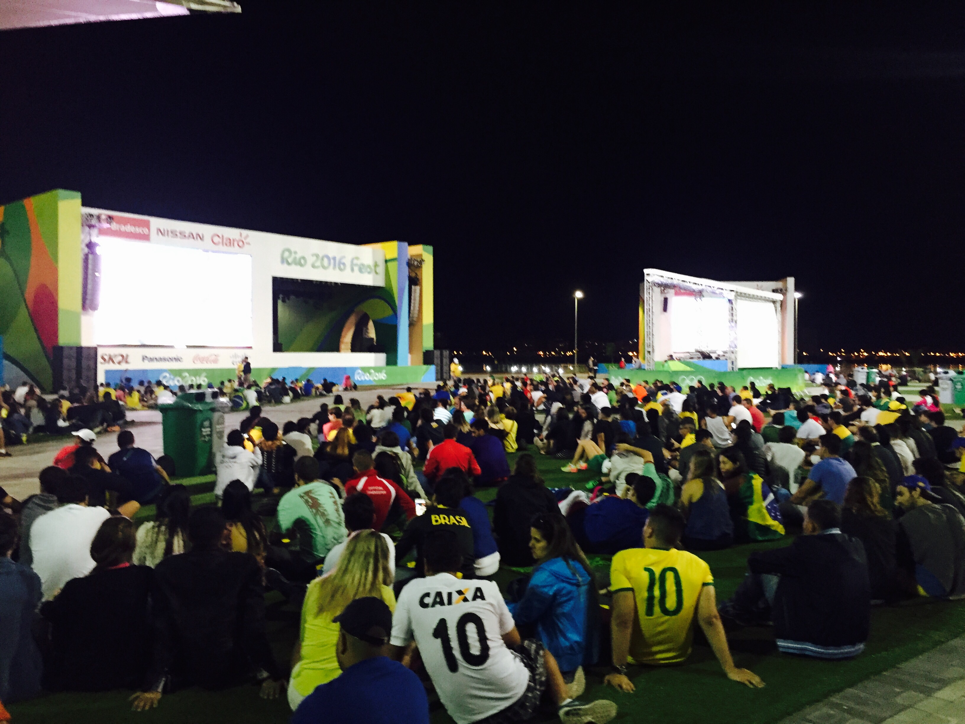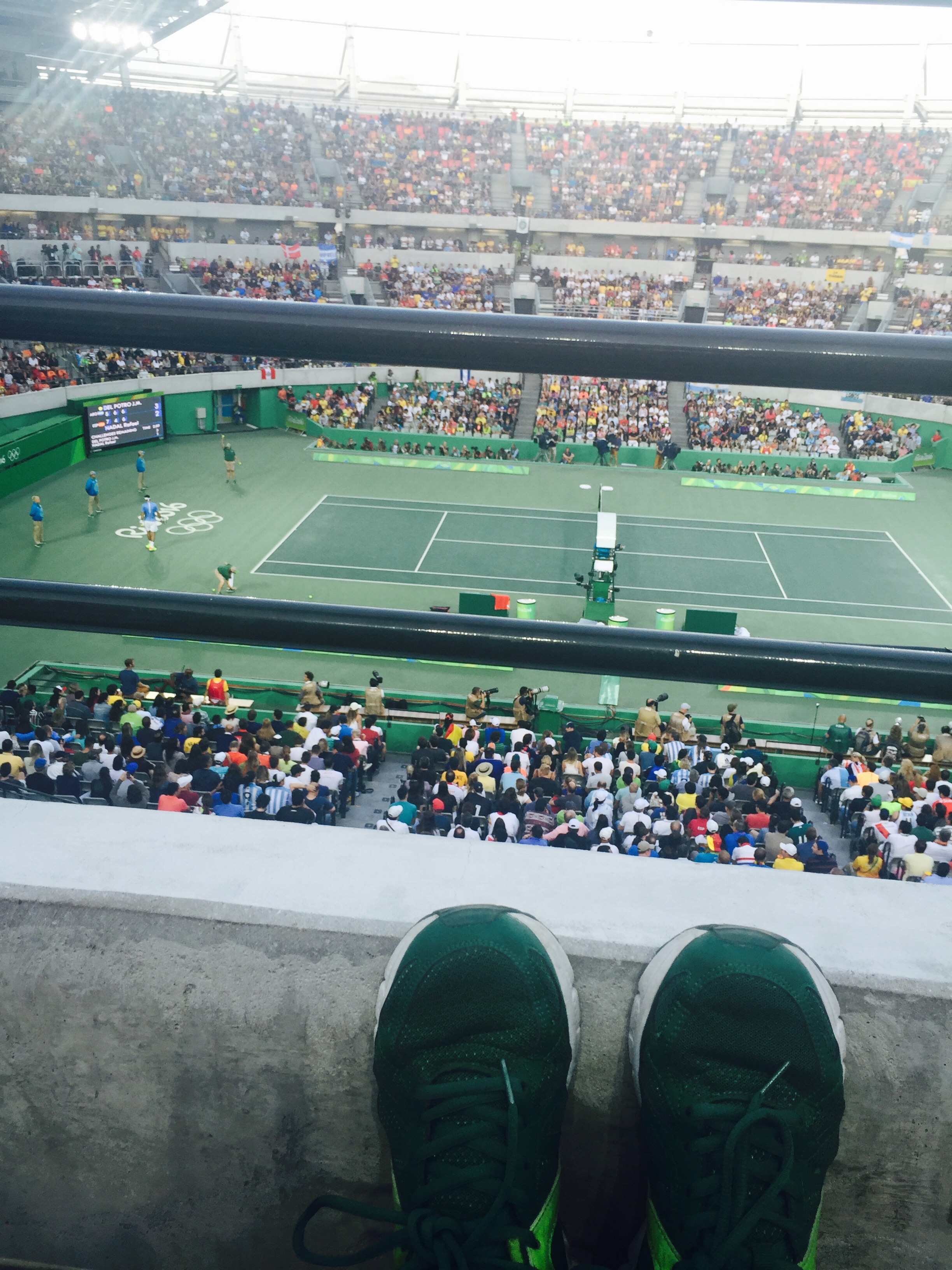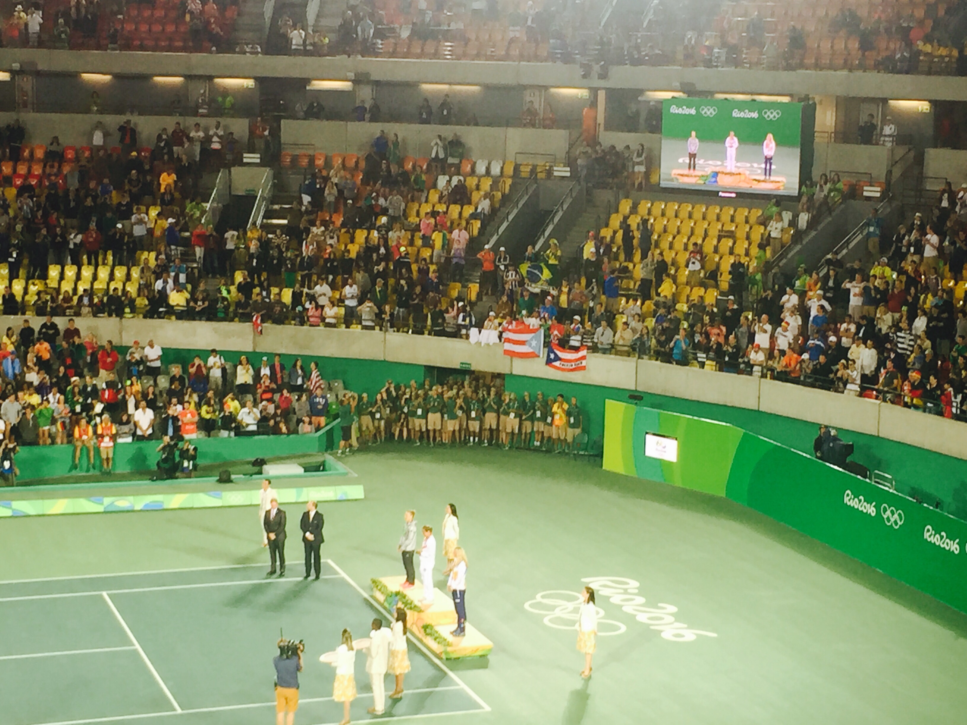 3. Event Action: Took in men’s semifinal tennis and women’s singles tennis finals yesterday! The Del Potro-Nadal match kept all of us on the edge of our seats and I was disappointed to see the latter lose. The best moment of the night was seeing Monica Puig win Puerto Rico’s first ever gold medal and then getting to celebrate with a Puerto Rican! The Puerto Ricans were out in full force with all of their flags and I teared up just watching it all. Historic win for her and all of PR! We then went to watch the beginning of the Brazil-Colombia soccer game on the big screens at the back of Olympic Park. It was quite entertaining to see all of us leave the bar and move to the Astro turf grass area to watch the game at around 10pm. I’ll be attending water polo quarterfinals on Tuesday during lunchtime! I’m curious to see if that pool is green like the diving one they had to shut down.