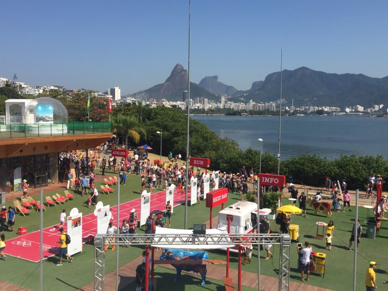 Swiss House: People I knew had been raving about this free house for a while so thinking it would be really crowded, we headed here for right when it opened in the morning. There was a long line for this snow globe thing that you could enter and experience fake snow – very popular among the Brazilians! We chose to walk around, take some pics, grab beers, and relax in the hammocks in the astroturf area. There was a big screen showing Swiss events and excellent food on hand. Compared to the Swiss House in Sochi that was inside Olympic Park there, this one was much larger, engaging, and meant to accommodate many more people. Right on the lagoon, it was a fantastic place to chill out and enjoy the Olympic atmosphere.