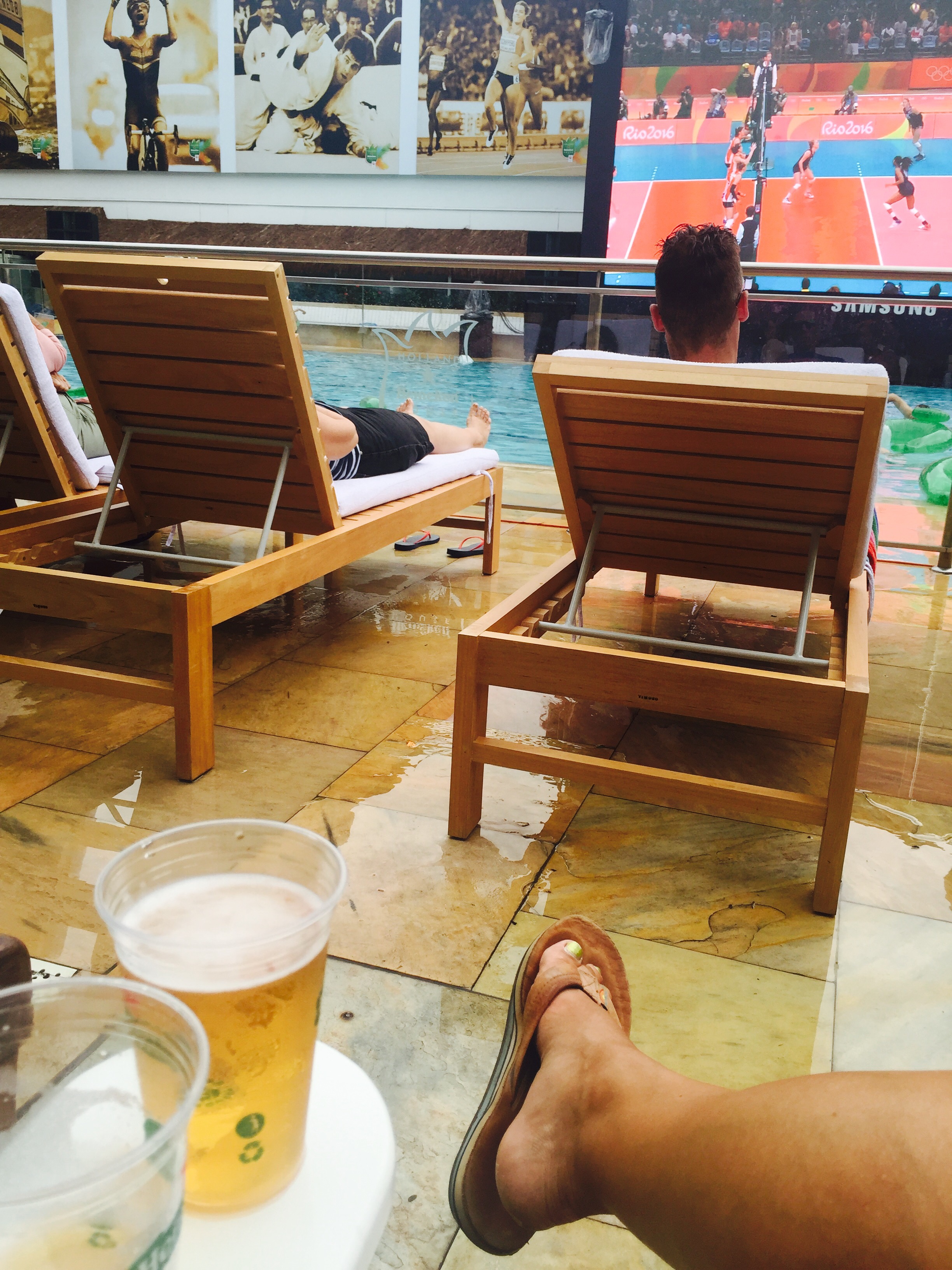 3. 30th Birthday: My birthday started out early with me moving out of Pousada Marambaia and into an Airbnb in Flamengo. The room and the apartment were perfect for me and one of my kind hosts showed me around the neighborhood and beaches before I set out on my own. Then, I hit up on the Holland Heineken House to soak of the cool vibes, pool, Dutch sports, and chill atmosphere. I definitely enjoyed drinking Heinekens poolside and swimming in the pool in front of the big screen TV there. Met some very friendly folks there and we all watched the Brazil-Germany gold medal soccer match. As Neymar shot the final penalty past the German keeper, Neuer, everyone went wild. I loved the celebration!